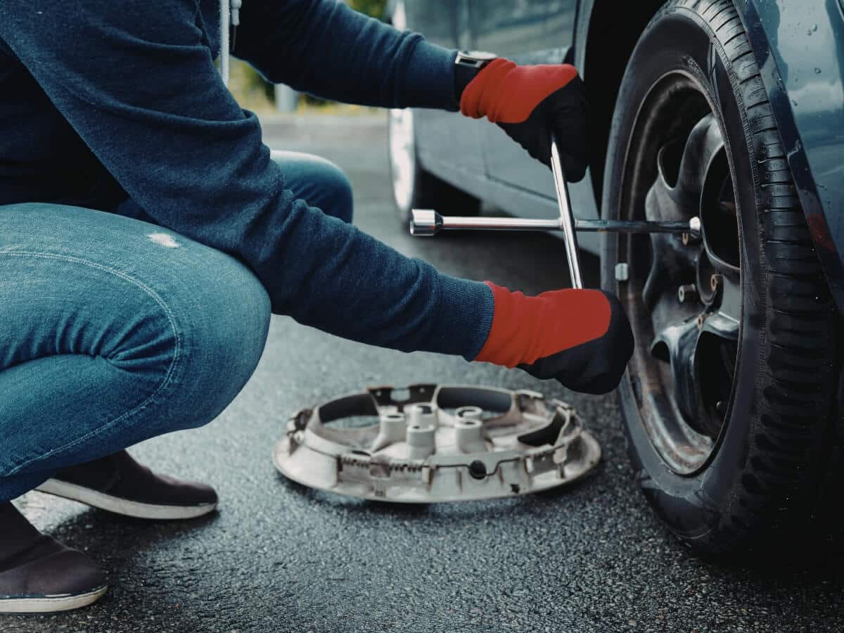 Skôr než auto zdvihnete, mierne povoľte skrutky na kolese, ktoré idete meniť. Stačí približne o štvrť až pol otočky. Ak by ste sa snažili skrutky povoliť až po zdvihnutí auta, koleso by sa mohlo otáčať a manipulácia by bola menej stabilná.