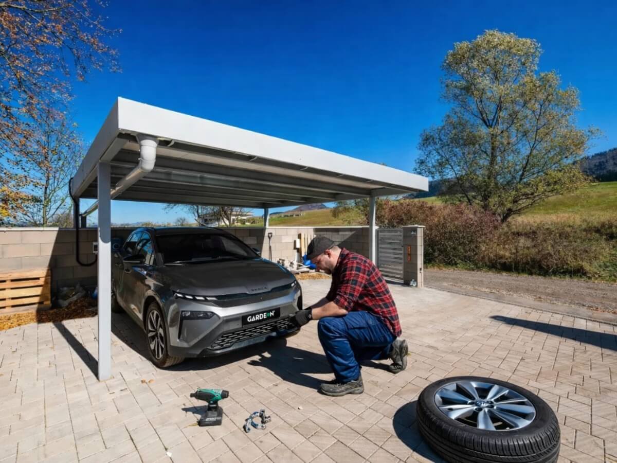 Dôležitý je aj priestor okolo auta. Pri prezúvaní potrebujete mať možnosť bezpečne otvoriť dvere, vytočiť koleso, manipulovať s ním a odložiť ho bokom bez toho, aby ste ho opierali o karosériu. Ak je prístrešok úzky, pri vyťahovaní kolies ľudia často nechtiac ťuknú disk o prah alebo o stĺpik, a pri elektrónoch to môže zanechať viditeľné poškodenie.