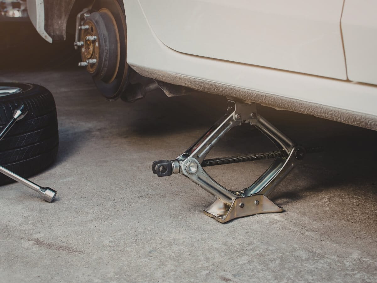 Najprv zaparkujte auto na rovnej a pevnej ploche. Zatiahnite ručnú brzdu a zaraďte rýchlosť, pri automate režim P. Pod kolesá, ktoré zostávajú na zemi, vložte kliny, čím zabránite nechcenému pohybu vozidla počas zdvíhania.