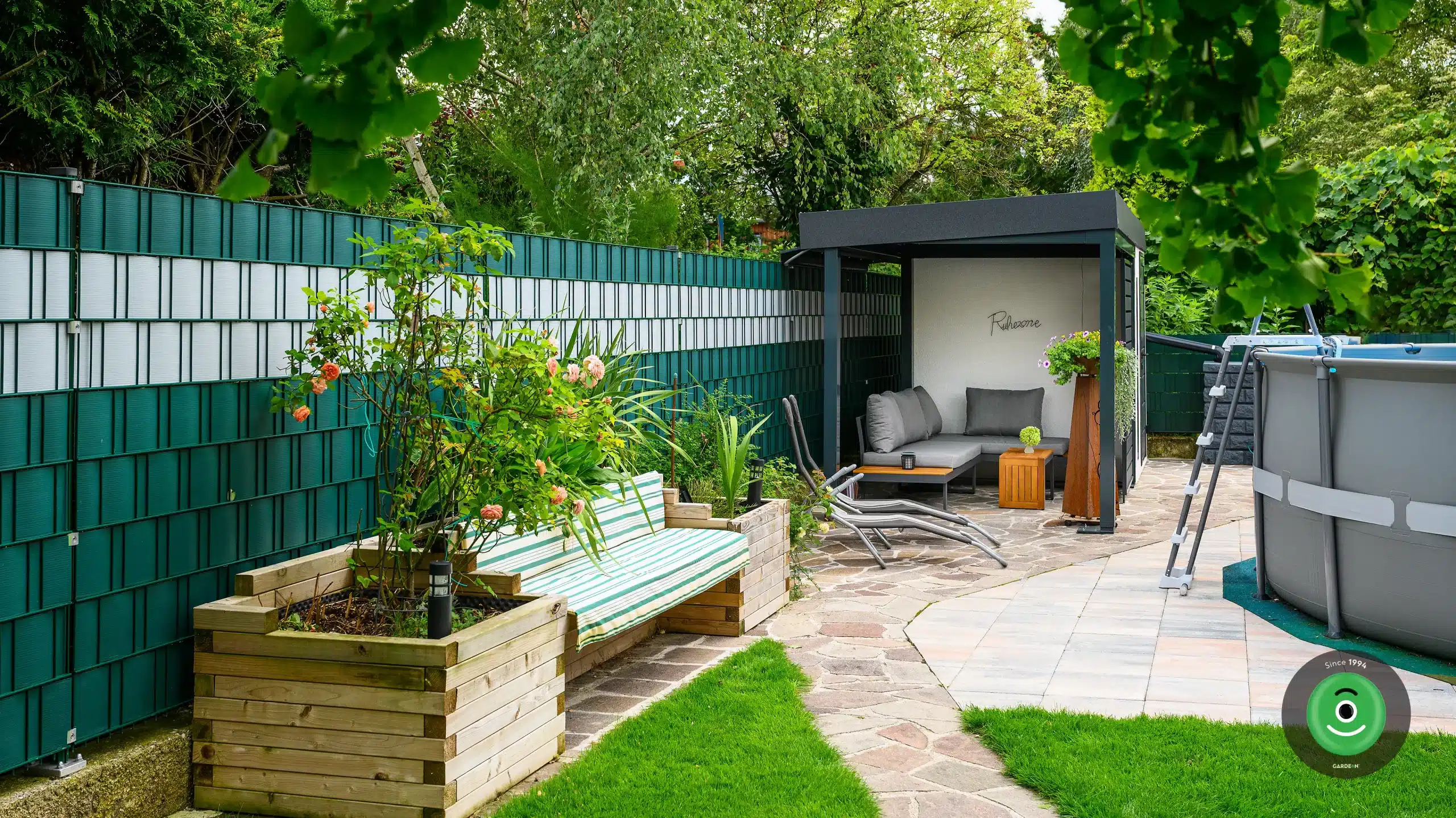 No a samozrejme, viac súkromia si pri záhadnom posedení môžete zaistiť aj pomocou zelene. Stromy, kry, trávy či vyššie kvety vytvoria pocit príjemného chráneného zákutia a výhľad na upravený záhon zároveň dotvorí útulnú atmosféru.