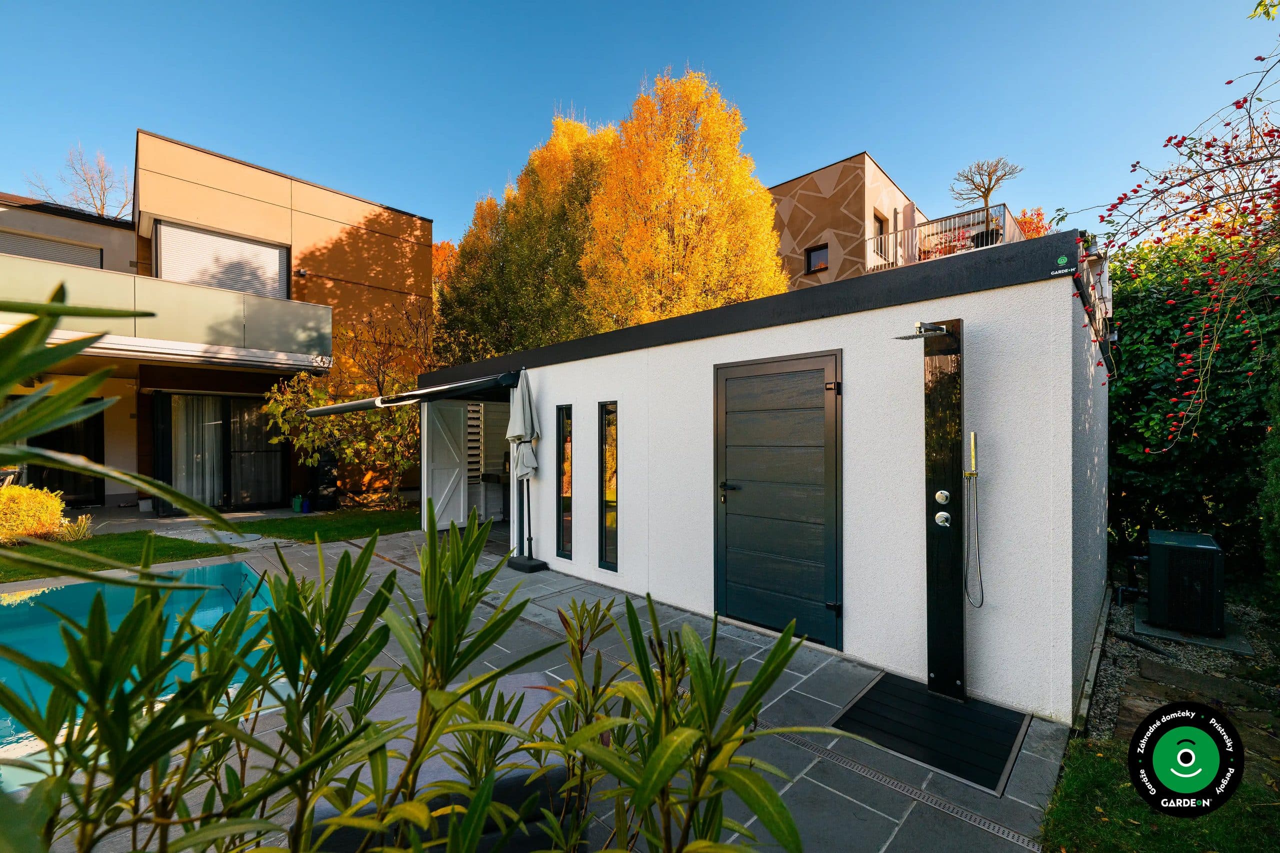 No a v tomto prípade stojí za povšimnutie ešte jeden praktický detail – záhradná sprcha. Tú v horúcich letných dňoch určite oceníte pri práci na záhrade aj pri oddychu.