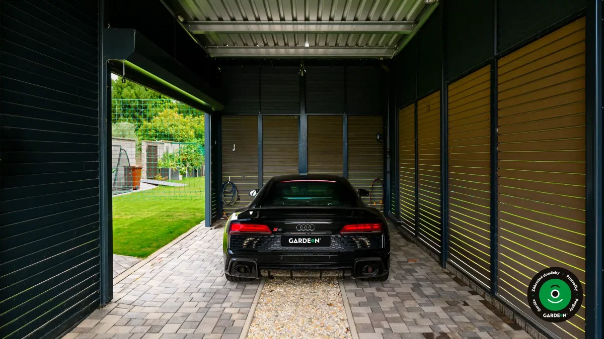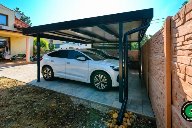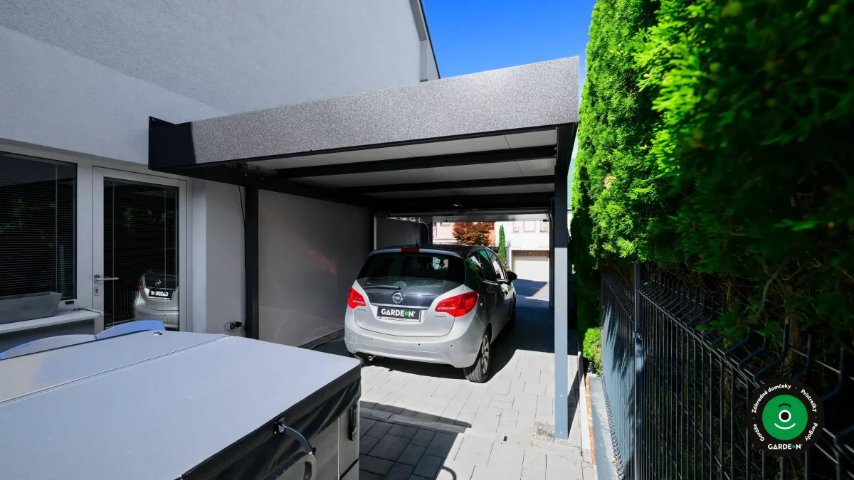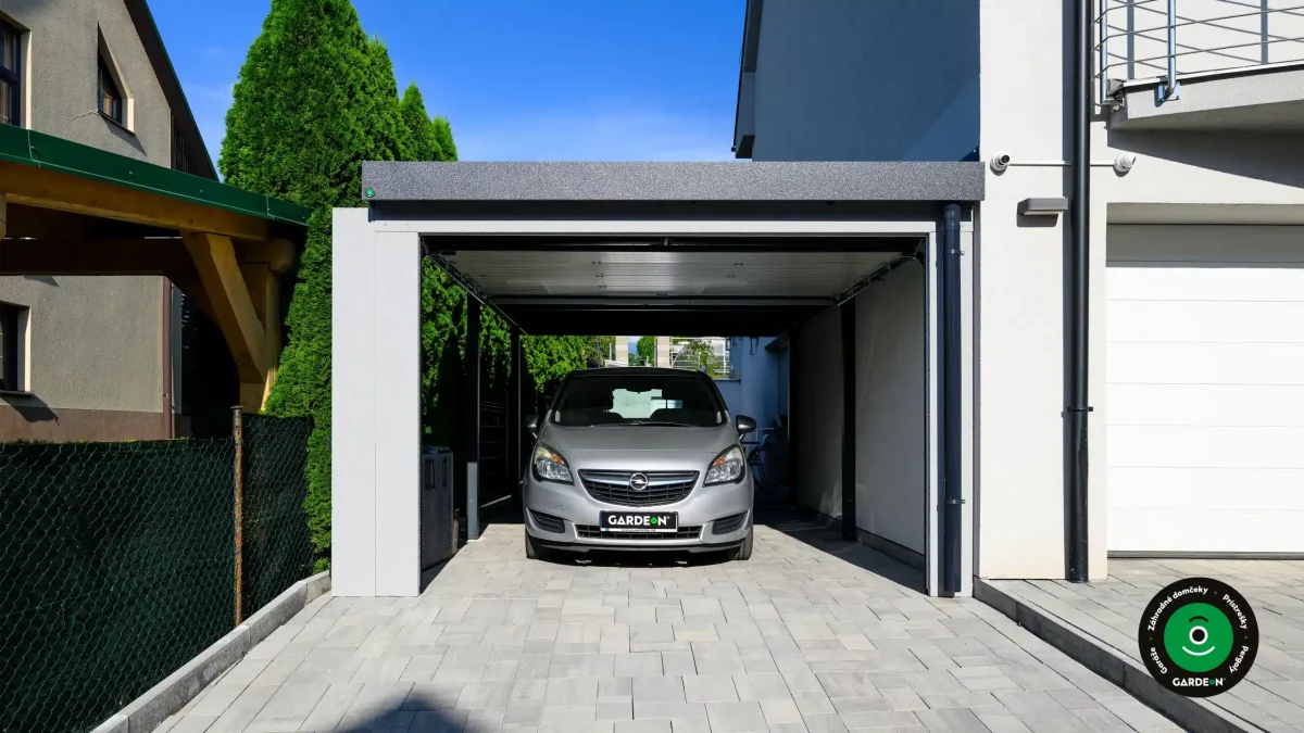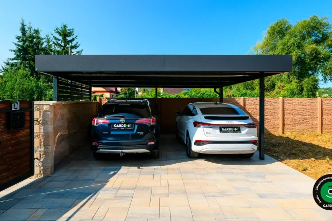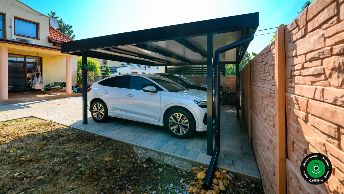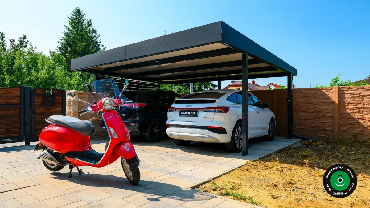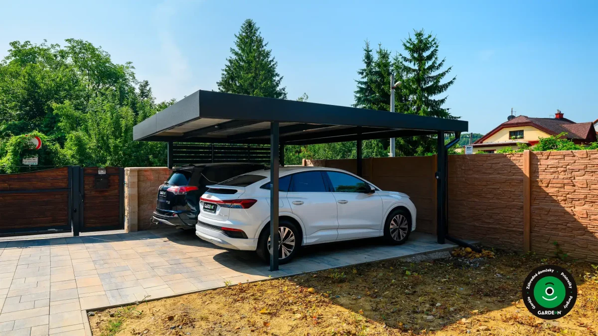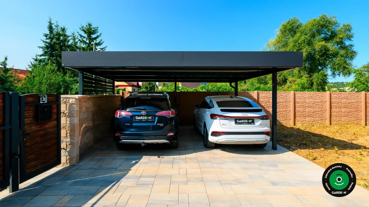Uprednostňujete kryté parkovacie státie pred garážou? Naše prístrešky GARDEON umožňujú prestrešiť jedno alebo viacero parkovacích miest, a dajú sa doplniť aj o vzdušnú ochranu bočných stien pomocou efektného latovania.