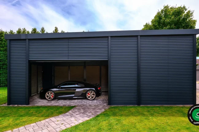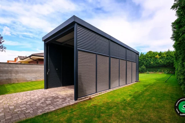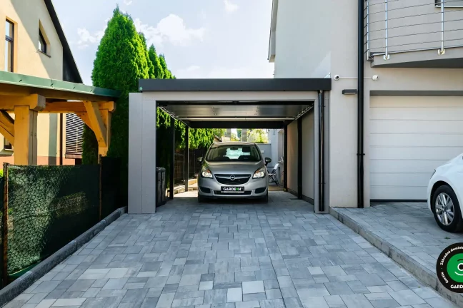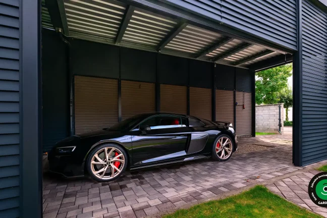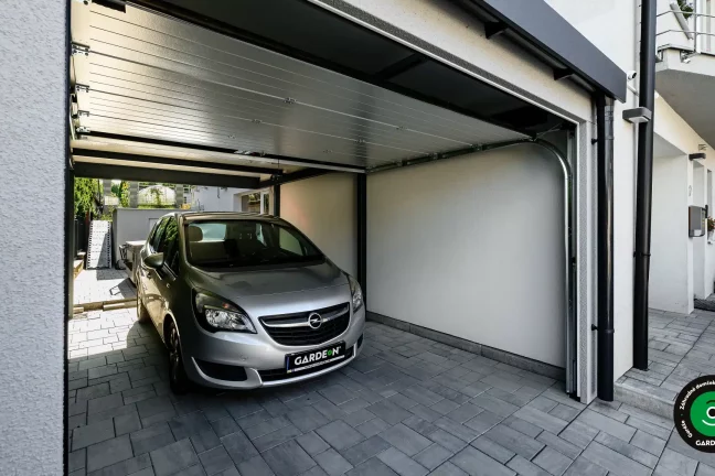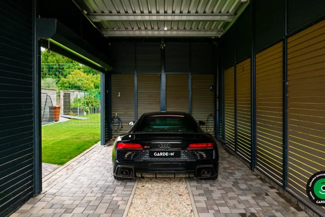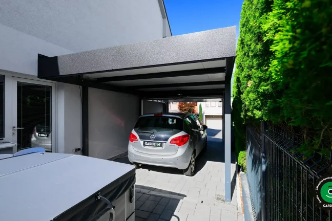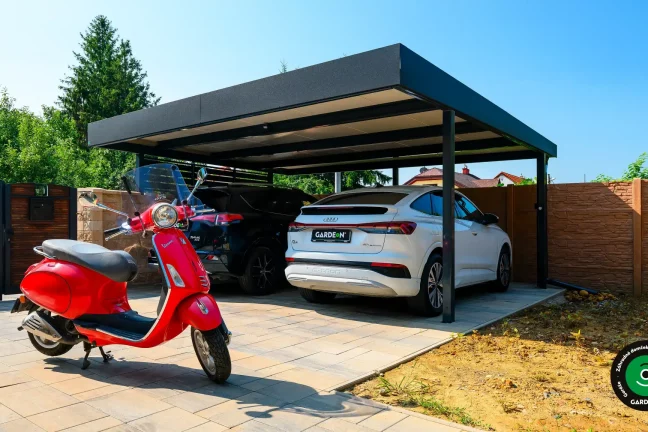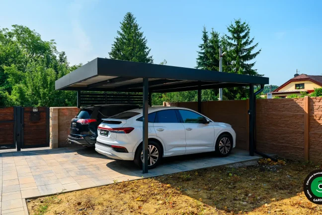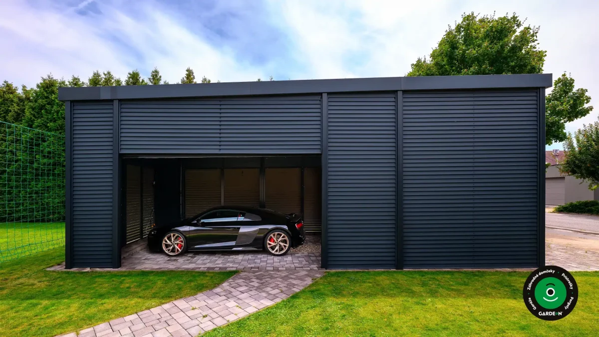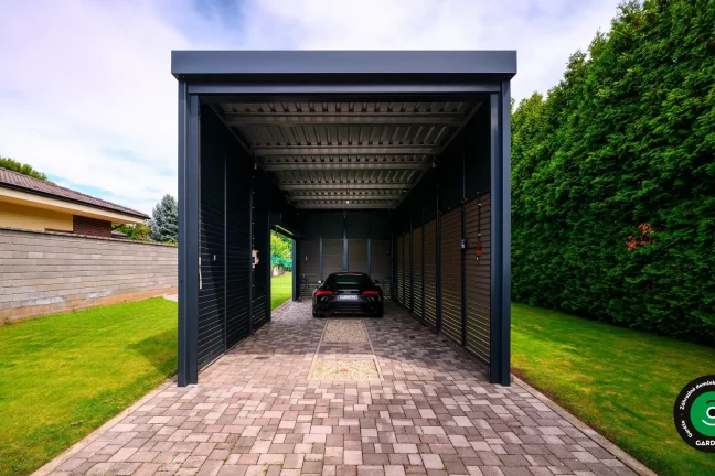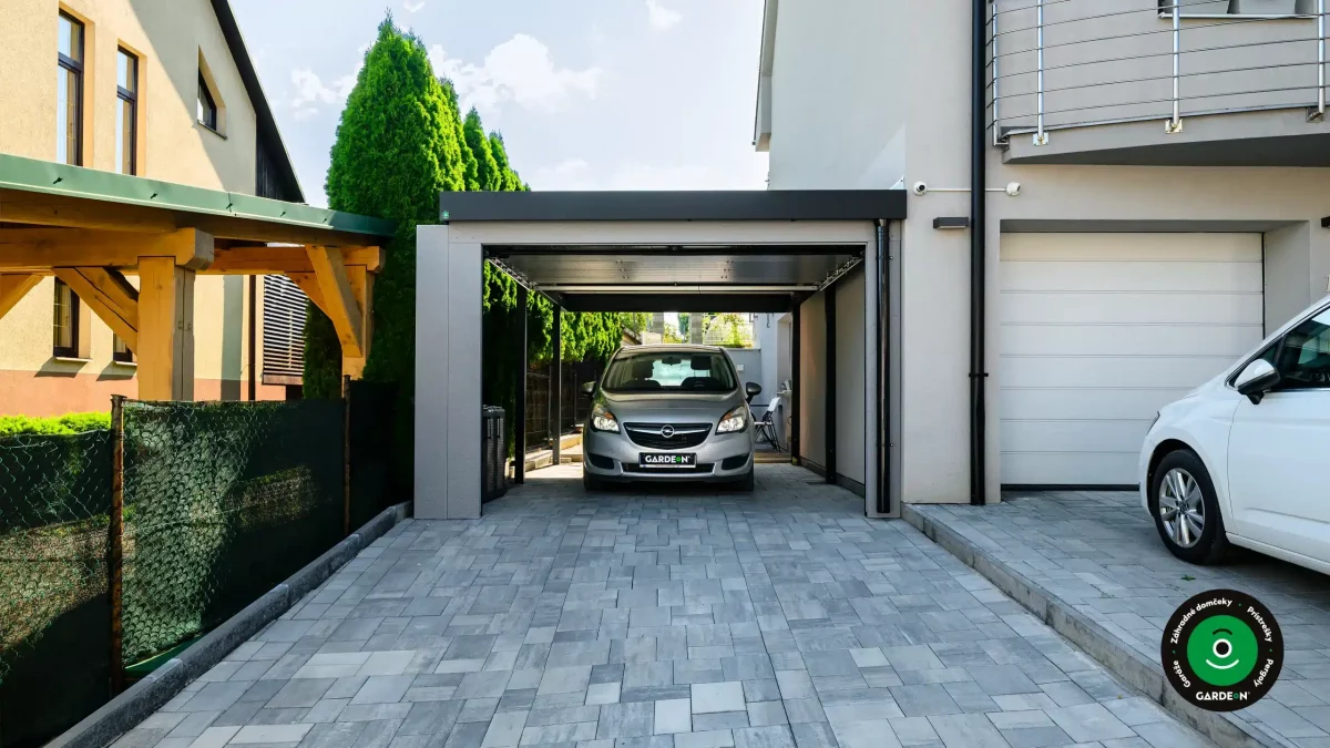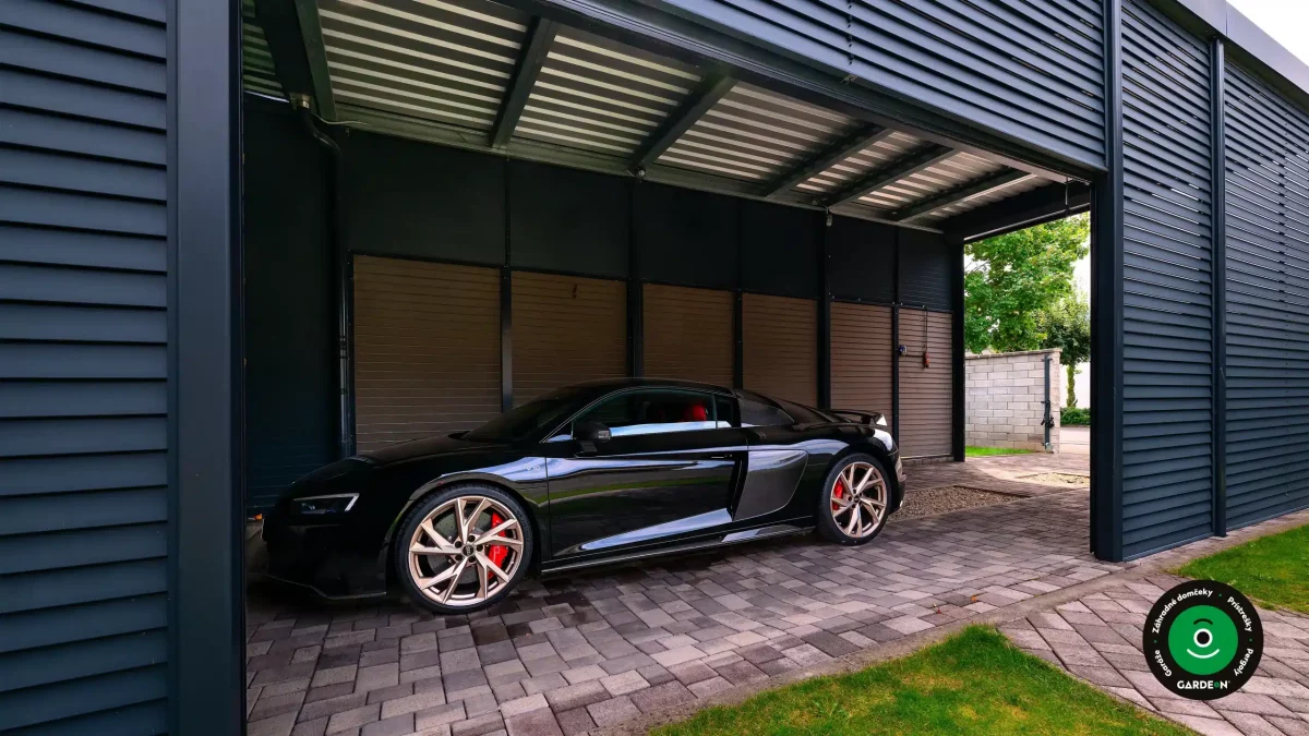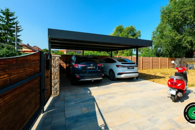 Uprednostňujete kryté parkovacie státie pred garážou? Naše prístrešky GARDEON umožňujú prestrešiť jedno alebo viacero parkovacích miest, a dajú sa doplniť aj o vzdušnú ochranu bočných stien pomocou efektného latovania.